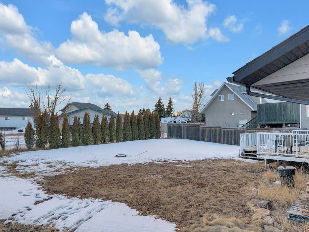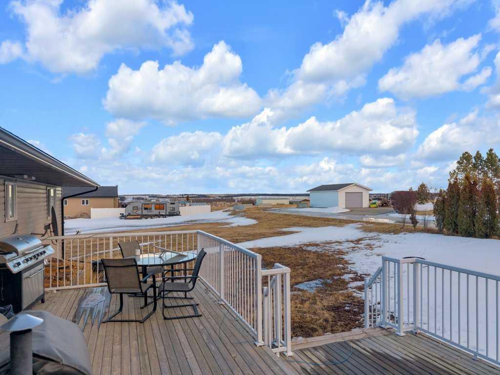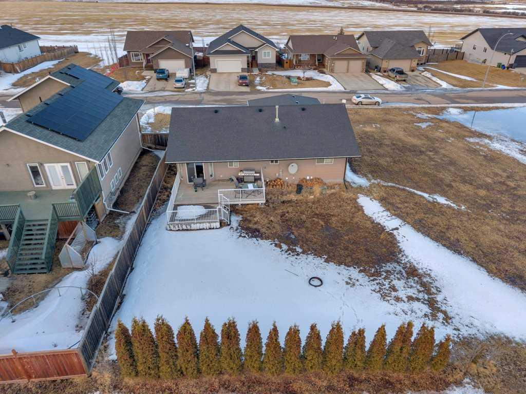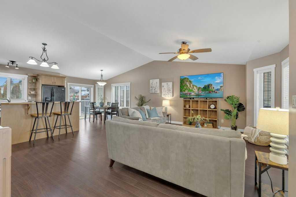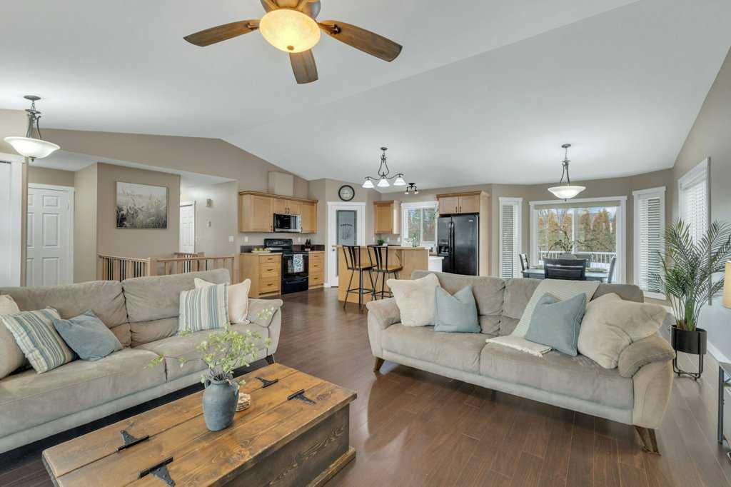 Welcome to your new home on a family-friendly avenue in Rimbey! This well-designed 4-bed, 3-bath bungalow with a heated attached garage offers space, comfort, and thoughtful layout throughout. Step inside to an open-concept kitchen, dining, and living area highlighted by vaulted ceilings that create an airy, spacious feel. From the dining area, patio doors lead to a large back deck—perfect for barbecues, entertaining, or simply relaxing in your backyard retreat. Enjoy the convenience of main-floor laundry...