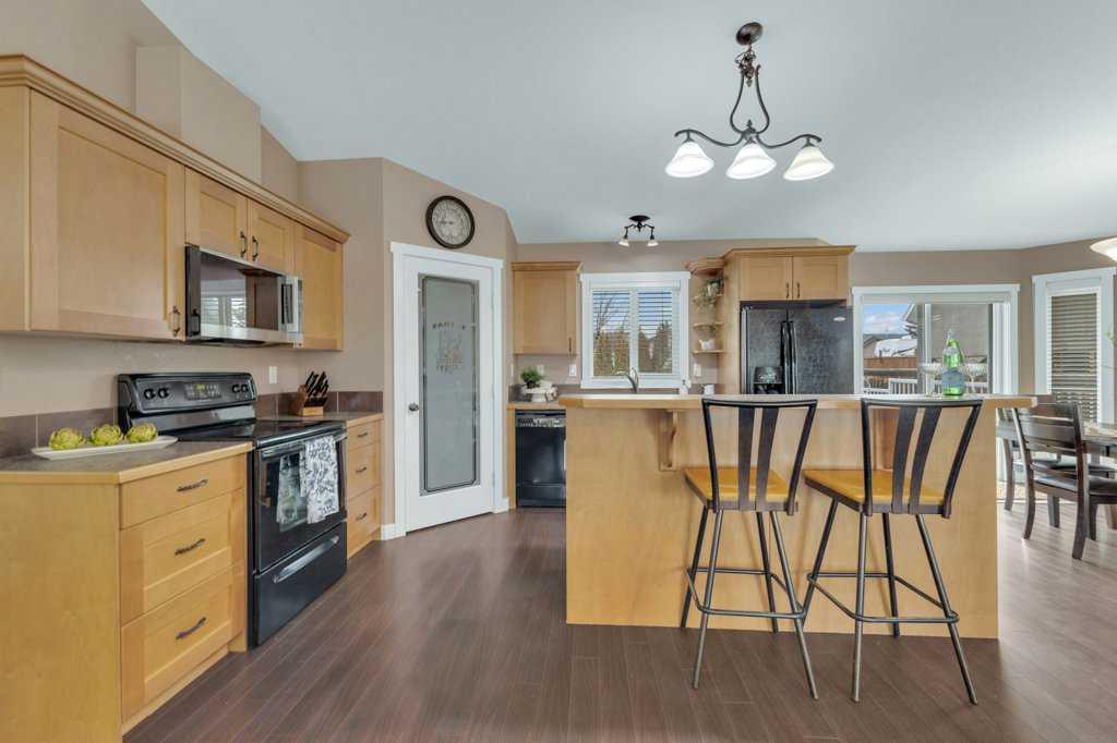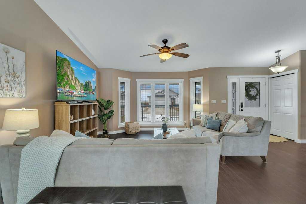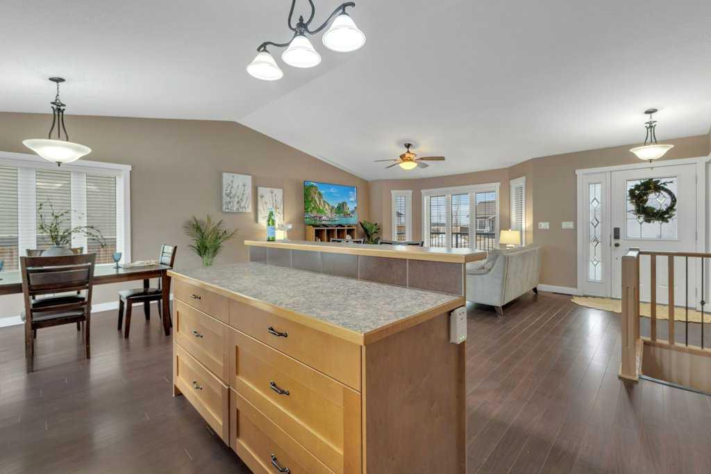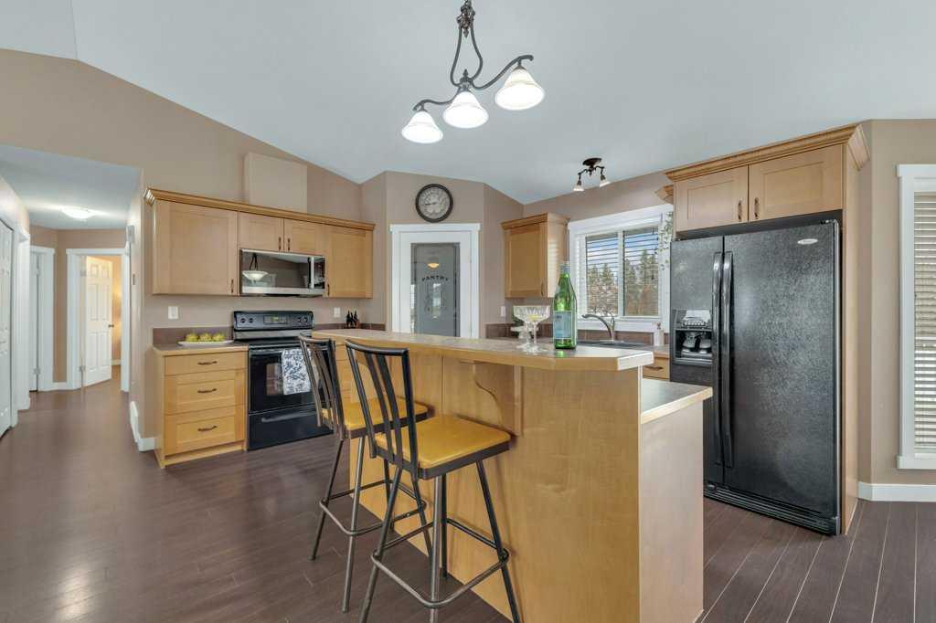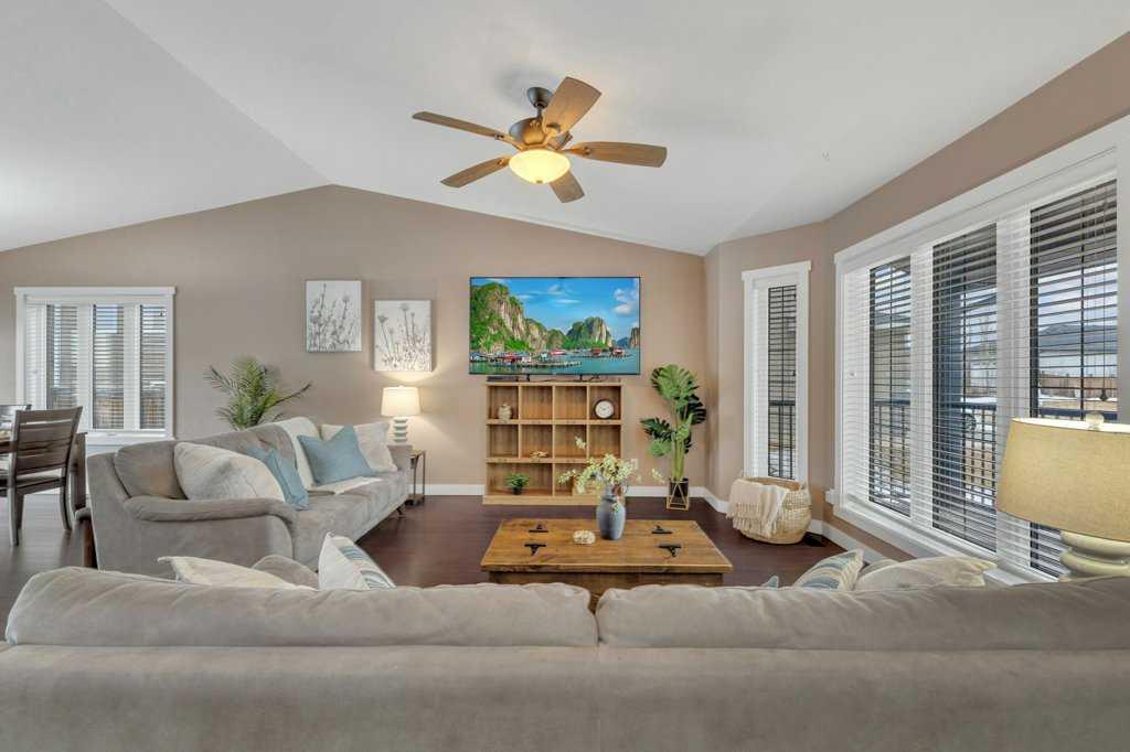 Welcome to your new home on a family-friendly avenue in Rimbey! This well-designed 4-bed, 3-bath bungalow with a heated attached garage offers space, comfort, and thoughtful layout throughout. Step inside to an open-concept kitchen, dining, and living area highlighted by vaulted ceilings that create an airy, spacious feel. From the dining area, patio doors lead to a large back deck—perfect for barbecues, entertaining, or simply relaxing in your backyard retreat. Enjoy the convenience of main-floor laundry...