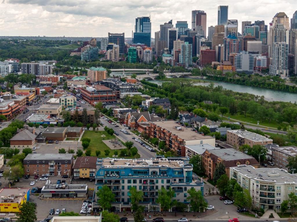 This is a rare opportunity to live in luxury on the quiet east side of the desirable Kensington Mews complex with panoramic DOWNTOWN VIEWS! Make your home in one of Calgary's trendiest communities - stroll the river pathways just outside your door and enjoy some of Calgary's best restaurants and locally owned businesses right in your neighbourhood! The 5th and 6th floors of Kensington Mews were built as the executive levels in this building with fewer units per floor, solid-core doors, 10' ceilings, air con...
