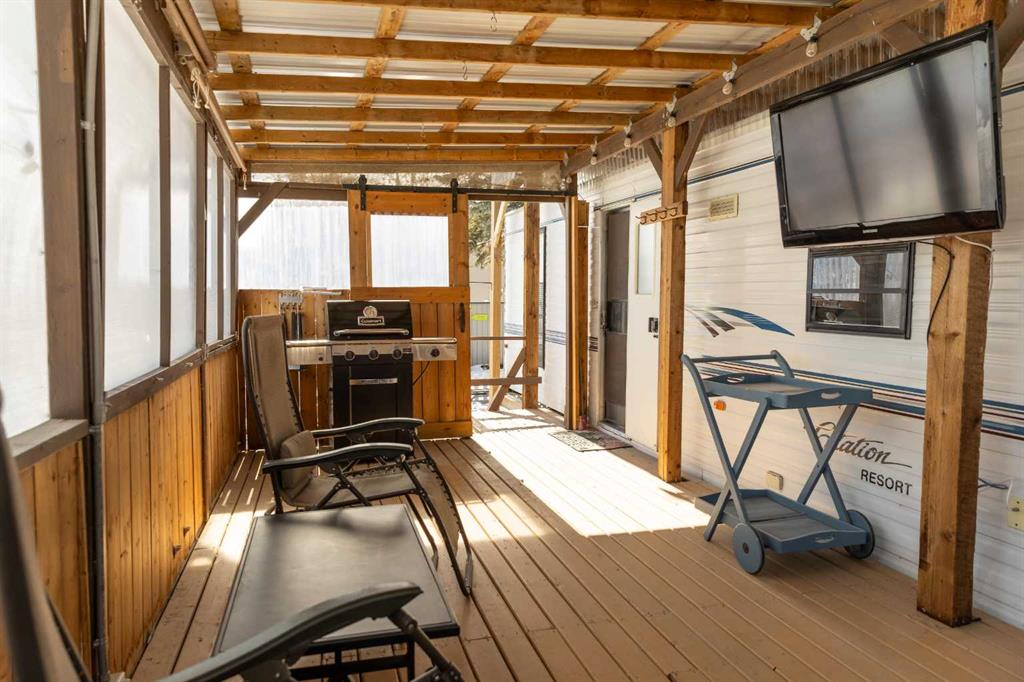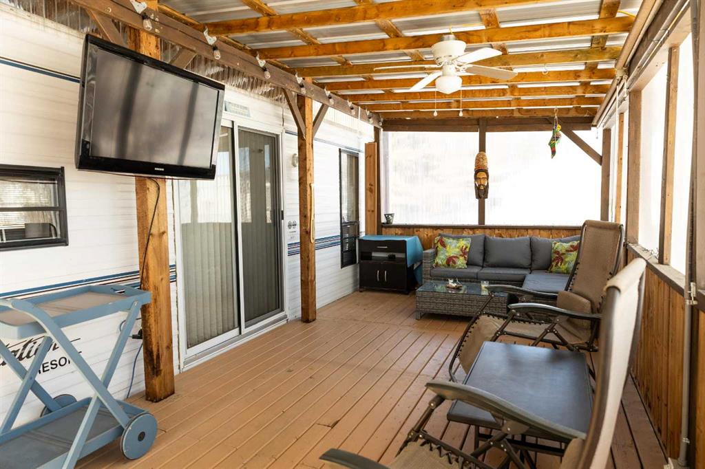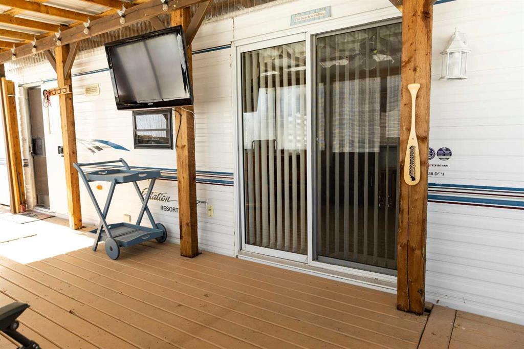 Lakeside, along the quiet edges of RV Heaven, find your tranquil summer retreat. Convenience meets full relaxation here featuring lake views, close proximity to the marina, low maintenance yard with private fire pit and spacious covered deck! The white vinyl picket fence welcomes your small family pet or young children. Outdoor hot and cold taps make coming off the beach a breeze. Landscaping shrubs and lilac trees create a breath of fresh air while you enjoy the sunshine or cozy up to the fire as the sun s...