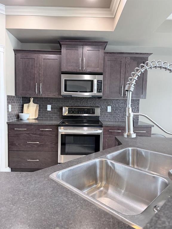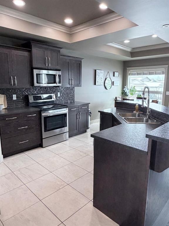 Welcome to this stunning bi-level home located on a CORNER LOT in the sought after community of Signature Falls! Step inside to an inviting OPEN-CONCEPT layout featuring vaulted ceilings, recessed lighting, and an abundance of NATURAL LIGHT flowing throughout . The kitchen is both stylish and functional, featuring stainless steel appliances, a corner pantry, tile flooring, dark oak cabinets, tile backsplash, and a centre dining nook , perfect for everyday living and entertaining. A rear door leads to the de...
