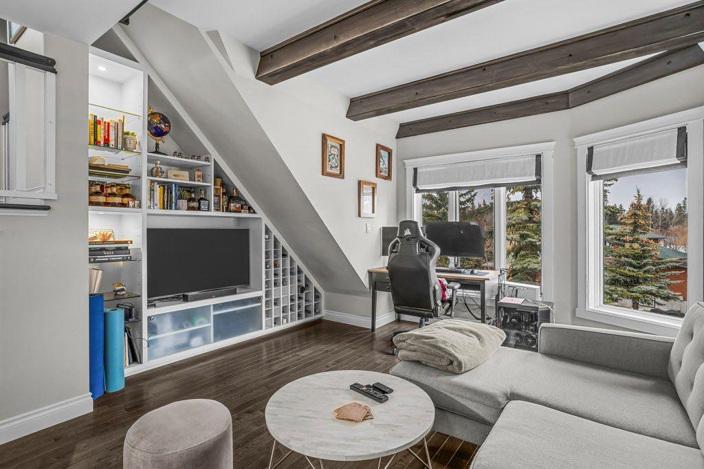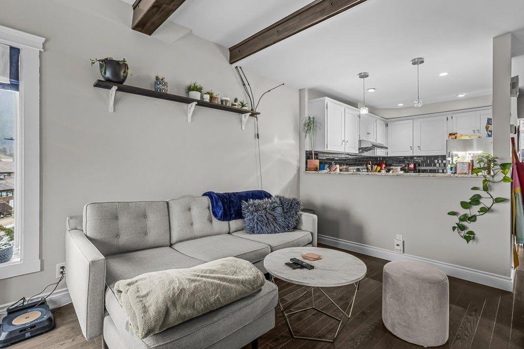 This townhome-style 1 bedroom + den, 2 bathroom home hits a tone that’s hard to find—warm, inviting, and genuinely comfortable to live in—within a building designed by award-winning architect Jeremy Sturgess. The two-level layout creates real separation: the main floor is designed for living and the upper level feels like a true retreat. The living space is the standout—ceilings with exposed beams, a wall of windows, and soft natural light that carries through the day. The flow here is easy and natural, wi...